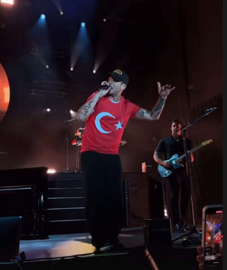 Sahneye tezli bir giriş yapan Ryan Tedder, üzerinde Türk bayraklı bir tişörtle sevenleriyle buluştu. Konserden renkli kareleri takipçilerinin beğenisine sunan Tedder, “İstanbul hakikat yapıyor” notunu düştü.